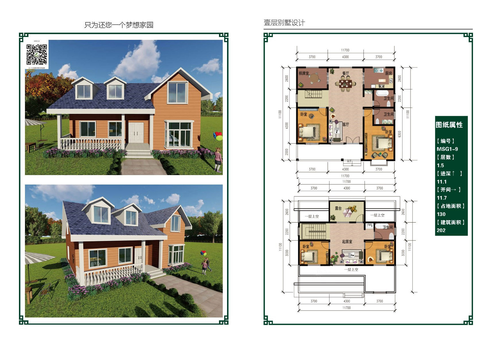 占地面積130㎡ 建筑面積:202㎡(帶閣樓)